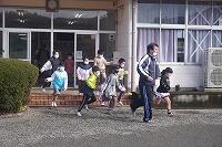 えびの消防署の方々に来校していただき、火災(3・4年教室出火)を想定した避難訓練がありました。