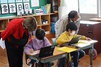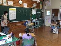 1年生は、数図ブロックを使って学習しています。4年生は、ガイド学習で授業を進めています。