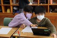 今日は、3・4年生の総合的な学習の時間にタブレットを活用した研究授業が行われました。先生からえびの弁について教えもらった後、物語をえびの弁に変換していました。タブレットを使って調べると、いろいろな言葉が出てきました。最後のイントネーションがついた発表は、しっかりえびの弁になっていました。