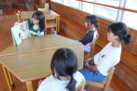 はじめに学校の紹介をして、1・2年生が作ったおもちゃで遊びました。