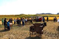 はじめにJAの方から、鎌のにぎり方、稲の持ち方、鎌の動かし方を教えていただきました。