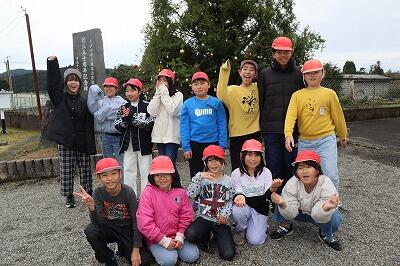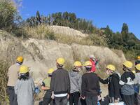 今日は真幸小の6年生との合同学習です。理科の学習の一環で、えびの市内の地層見学に行ってきました。