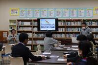 本を持っての読み聞かせ、本をモニターに映しての読み聞かせ、3人の図書委員それぞれが工夫して取り組みました。