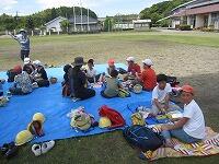 お茶つみが終わった後、体育館で高齢者の方と交流会をしました。みんなで歌を歌ったりゲームをしたりしました。また、楽しく会話をしたり肩もみなどをして交流を深めました。6月には、今回のお茶を使ってお茶会を開きます。子どもたちも楽しみにしています。