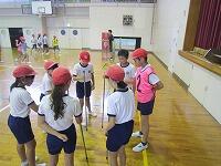 朝から時折雷が鳴り響くあいにくの雨で、運動会の練習は体育館で行いました。今日は、ダンスの練習を行いました。