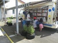 8月28日(水)は、ブックランド号の来校日でした。給食を食べ終わった子どもたちが借りていた本を持って集まってきました。そして、また読みたい本を選んでいました。