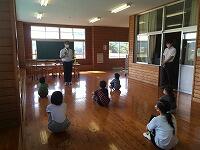 全校朝会では、校長先生のお話、担当の先生のお話、えびの市水泳記録会の表彰がありました。