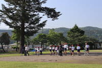 はじめに並ぶ順番などの確認をしたあと、手をつないで列を作ったり、手具を使ったり、これまでに身に付けた技の確認をしました。