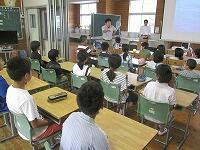 7月17日にお魚教室を開催しました。講師として、鹿児島大学水産学部の教授に来ていただきました。また、補助として学生の方も4名来てくださいました。はじめに、錦江湾の特徴や住んでいる魚などについて話をしてくださいました。特に、えびについて分かりやすく教えていただきました。講話の後は、グループに分かれてえびの観察を行いました。実際に、えびを手にとって自分の目で観察しながら、足の数、雄と雌の見分け方などについて調べていました。子どもたちは、海の生き物に大変興味をもったようです。