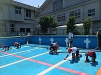 午後から全児童でプール清掃をしました。2年生は側溝、3年生以上はプールの中をピッカピカに磨きました。16人で力を合わせると、すごいパワーです!!