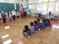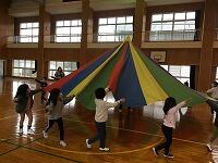 京町こども園の年長さんが来校し、1・2年生と交流をしました。教室や体育館で遊んだり、学校探検をしたりしました。パラバルーンを使った遊びは、大変盛り上がりました。