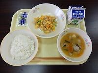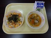 【献立】麦ご飯、友禅ご飯の具、きざみのり、キムチ汁