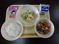 日本一周味巡り第27回は「徳島県」です。「けんちゃん煮」は、普茶料理(江戸時代初期に中国から日本にもたらされた精進料理)のケンチェに由来する説と鎌倉の建長寺の修行僧が作っていたことに由来するという2説あるそうです。”畑の肉”といわれる大豆から作られる豆腐と根菜類がたくさん入った栄養満点の徳島県の郷土料理です。他の地方でも同名の郷土料理が見られます。今日の給食では、厚揚げが使われています。厚揚げの他に鶏肉、にんじん、ごぼう、大根、こんにゃく、青豆などが入っています。よく煮込んであり、味がよくしみてとても美味しいです。
