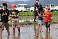 JAえびの青年部の方々にご協力いただき、真幸小学校と合同で田植えをしました。説明を聞いた後、苗を植えました。収穫が楽しみです。