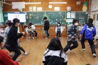 今日は、野外体験活動を予定していましたが、1月に延期となりました。通常授業となり、昼休み時間には24日に予定していた全校遊び(クリスマスパーティ)をしました。