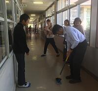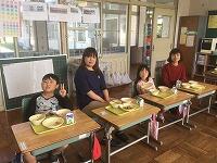 給食時間は、2カ所に分かれていっしょに給食を食べました。準備や片付けも見てきただき、児童の素早い動きとチームワークに関心された様子でした。