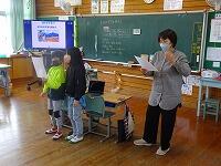今日は、3・4年生の総合的な学習の時間にタブレットを活用した研究授業が行われました。先生からえびの弁について教えもらった後、物語をえびの弁に変換していました。タブレットを使って調べると、いろいろな言葉が出てきました。最後のイントネーションがついた発表は、しっかりえびの弁になっていました。