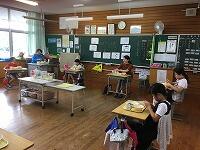 えびの市防災食育センターの栄養教諭の先生が来校され、給食の時間一緒に過ごしました。準備や片付けの様子を見ていただき、3・4年教室で会食もしました。給食時間の放送では、栄養教諭の先生の一口メモや放送委員会から先生へのインタビューもありました。先生とお話ができて、照れながらもうれしそうでした。