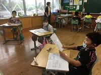 今日に午前中は、運動会予行をしました。本番と同じように競技を行いました。休憩や水分捕給をし、3密を避けながらの実施です。全体の流れや細かい動きがつかめたようでした。