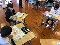 1年生がリモートを使って、初めて真幸小学校の1年生と交流をしました。お互いに自己紹介をしました。緊張していましたが、こども園の頃の友だちの顔も久しぶりに見ることができ、終わる頃には笑顔になっていました。来年度は、真幸小学校に行って交流学習ができるといいですね。
