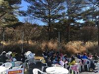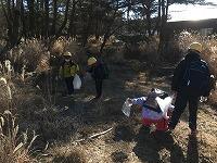 スケート教室の後は、クリーン作戦(清掃活動)をしました。縦割り班に分かれ、松林の中や駐車場のごみを拾いました。とってもきれいになりました。