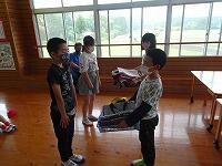 5・6年生が作ったタブレット用バックの贈呈式が行われました。校長先生のお話の後、4年生が代表して受け取りました。どのバックもきれいに縫ってあり、心の込めて作られたあたたかいバックです。明日から、タブレットを使用するときは、バックに入れて持ち運びします。