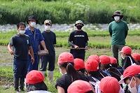 JAえびの青年部の方々にご協力いただき、真幸小学校と合同で田植えをしました。説明を聞いた後、苗を植えました。収穫が楽しみです。