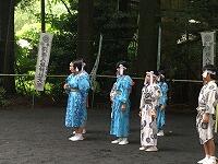 今日は神事の後、全校児童が鎌踊りを奉納しました。多くの方々が見守る中、地域の方に指導していただいた成果を発揮し、上手に踊ることができました。踊りの後は、一人ずつ自己紹介を行いました。児童の堂々とした姿を見ていただきました。