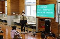 「火事だー!」と5年生が大きな声で学校中に知らせ、火災発生を想定した避難訓練が行われました。えびの消防署の方々に指導していただき、通報訓練(職員)や消火訓練(全児童)を行い、煙の中を避難する体験もしました。煙の中は、視界がとても悪く、ハンカチをあてていないと煙を吸い込んでしまい、避難をするのに時間がかかっていました。児童も職員も初体験だったので、多くの学びがありました。最後に救急車や消防車を見せていただきました。
