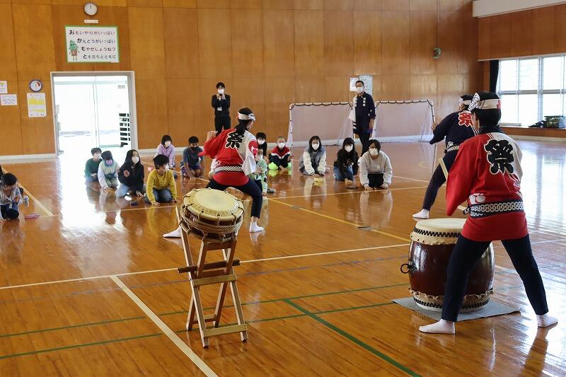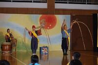 荒馬座の方が来校され、鑑賞教室が行われました。今日は、いつもと違った雰囲気の体育館で、子どもたちの目の前でうたったり踊ったり演奏していただき、太鼓の響きを床からも直接感じることができました。児童も参加する場面もありました。日本の祭りを感じる貴重な時間となりました。荒馬座のみなさん、ありがとうございました。