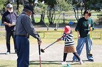 今日は、ふれあい参観日でした。フリー授業参観、グランドゴルフ交流会が行われました。保護者の方だけでなく、地域の方々にも授業の様子を見たり参加していただき、グランドゴルフを一緒にしました。グランドゴルフでは、ナイススプレイに歓声が上がっていました。