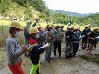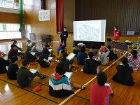 6年生の理科の時間に、真幸小の6年生と合同で地層見学に行きました。ガイドクラブの方々に体育館で説明をしていただき、実際の場所へ行き、地層の様子を見ました。