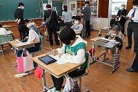 今日の6校時に、真幸中学校区一貫教育における5・6年生の算数の研究授業が行われました。真幸小学校、真幸中学校の代表の先生方には来校しての参観、その他の先生方にはテレビ会議Teamsを使って各校で視聴参観していただきました。5・6年生は、ガイド学習が定着してきています。