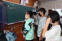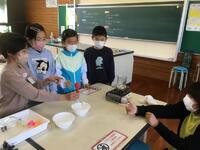 3年生と4年生の理科の様子です。3年生は、保健室で体重計に乗ってものの重さの実験、4年生は、理科室で物の温度と体積の実験をしていました。