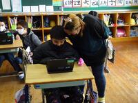 昨日は、降雪・凍結のため臨時休業でした。今朝も冷え込んでいたため、渡り廊下が凍っていました。休み時間に、3・4年生が協力して安全に歩けるようにしてくれました。校内のあちらこちらに残っていた雪は、午後に溶けました。