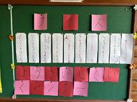 1年生が給食センターを見学した時のことをまとめ、クイズにしました。学習棟入り口横に掲示しています。
