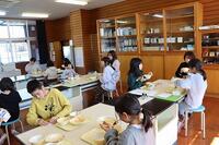 子どもたちからのお礼の言葉、センターのみなさんへのプレゼントをお渡したあとは、全校みんなで給食をいただきました。