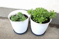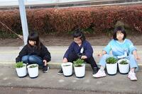 用務員さんに植え方を教わりながら2鉢ずつ丁寧に植えました。