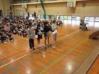 それぞれの学年の出し物で盛り上がった後は、6年生へ感謝の寄せ書きとメダルを贈呈しました。