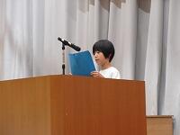 今日で81日間の2学期が終業しました。2年生の代表3名がが作文を発表しました。