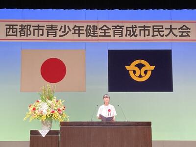 西都市民会館で行われた「西都市青少年健全育成市民大会」において、本校代表の児童が意見発表を行いました。