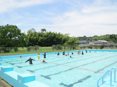 梅雨の合間の青空の下、子ども達は、まだ少し冷たいプールの水に恐る恐る足を入れていました。昨年度までは、コロナウイルス感染症の対策のため、友達との距離を空けたり、大声を出さないように注意するなど窮屈なルールの中での水泳指導でしたが、今年はそれらのルールもなくなり、心置きなく楽しめたようです。