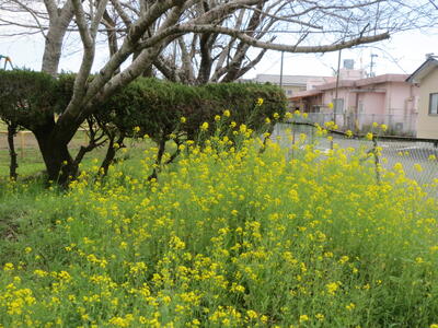 学級花壇ではスナップエンドウが実り、校庭にはつくしや菜の花も元気に伸びていました。