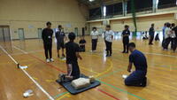 水泳指導が始まる前に心肺蘇生法を学びました。
