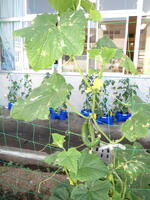 少人数4組と5組のこども達が中庭の学級園で野菜を育てています。朝の水やりや草抜きなど毎日ていねいにお世話をして、野菜達は元気に育っています!  枝豆、きゅうり、スイカ、なす 色鮮やかです!