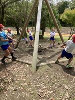 今日は、フィールドアスレチックです!チームワークで頑張ってます!