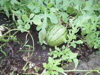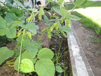 少人数4組と5組のこども達が中庭の学級園で野菜を育てています。朝の水やりや草抜きなど毎日ていねいにお世話をして、野菜達は元気に育っています! 枝豆、きゅうり、スイカ、なす 色鮮やかです!