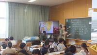 妻北小へは3名の会員が来校され、1組から3組へ訪問し