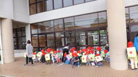 西都市消防局から3名の講師をお招きし、窒息時の2種類の措置の仕方を学びました。