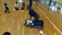 水泳指導が始まる前に心肺蘇生法を学びました。